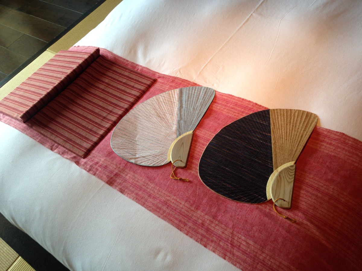 空間のポイントとなるよう、場所ごとに綿紬を選び、